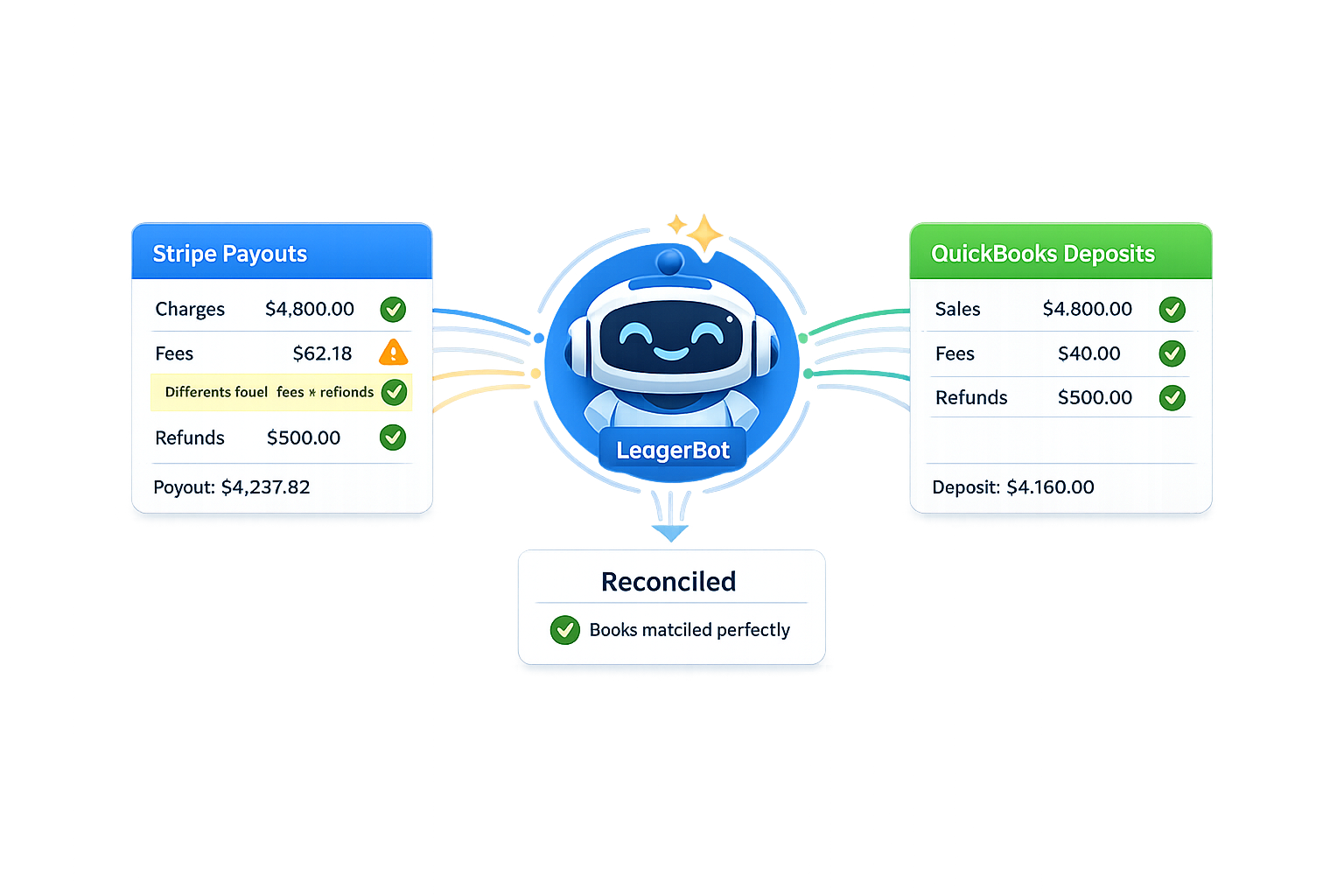 You check your bank account. Stripe deposited $4,237.82 yesterday. You open QuickBooks. Your sales say $4,800. The deposit recorded is $4,160.